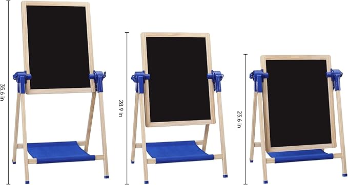 - Adjustable Height: The easel table can be easily adjusted to accommodate your growing child's height, ensuring comfortable use. Precautions!Please Tear off the protective film on the white board and chalkboard surface before using!