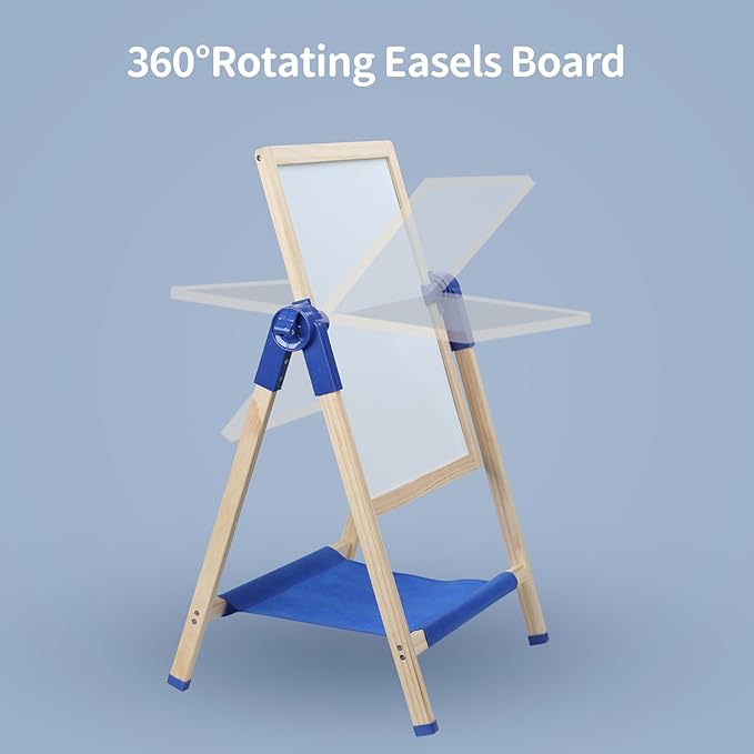 Toddler Easel, Kids Art Easel, Easel for Kids, Wooden Double-Sided Drawing Board, Adustable Art Table, Deluxe Standing Easel Set,360°Rotating Drawing Easels with Art Supplies,Age 3-5,4-8