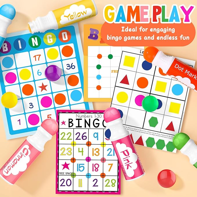 - 【Safe for Little Ones】A non-toxic and water-based formula ensures the safety of your child while they explore their creativity. Parents can have peace of mind knowing that their little ones are using safe and child-friendly art supplies. Our dot art markers are specifically made for toddlers and preschool children. The safe formulation ensures that these bingo paint daubers are safe for use around curious hands and mouths without any worries.