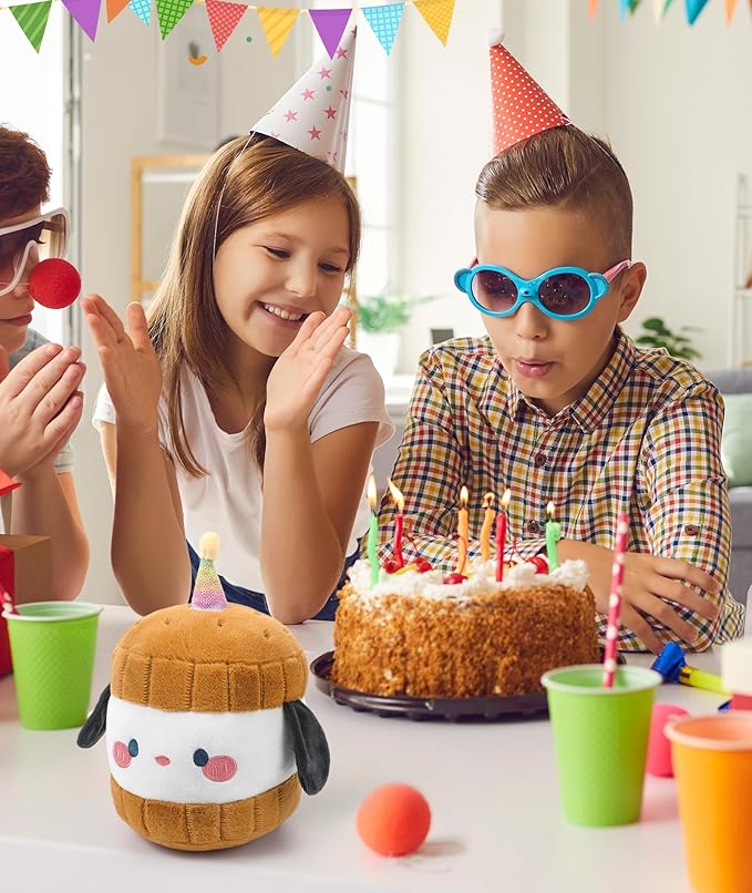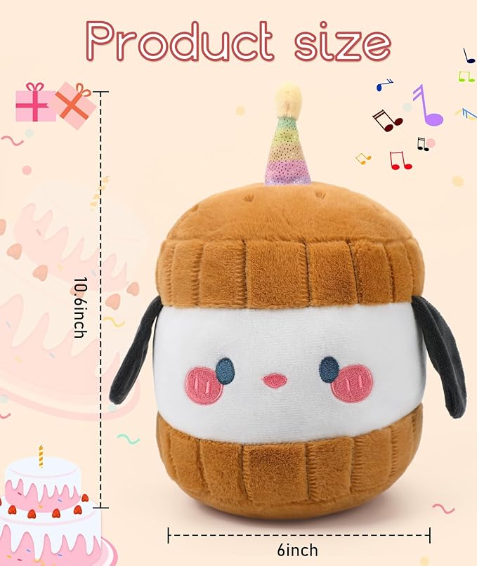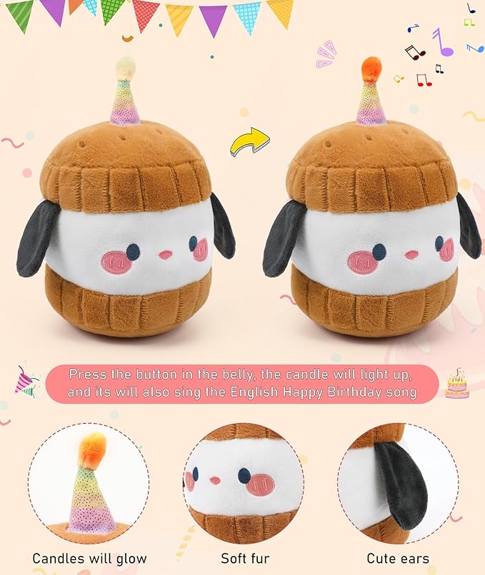 - Unique Design: Adorable dog plush toy design with a glowing candle on birthday cake plush's head makes the stuffed dog suitable for all ages, making it a perfect gift for birthdays, Valentine's Day, Christmas, and more