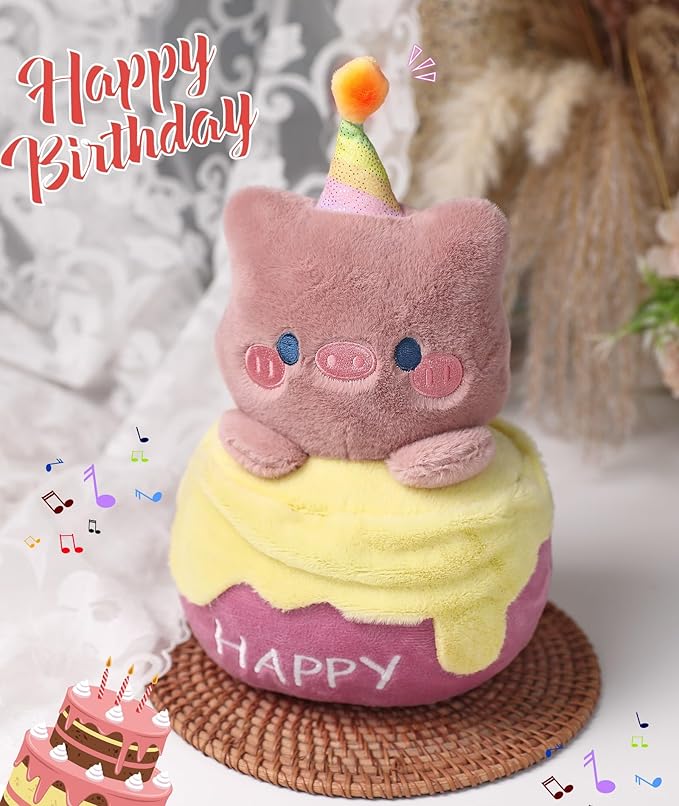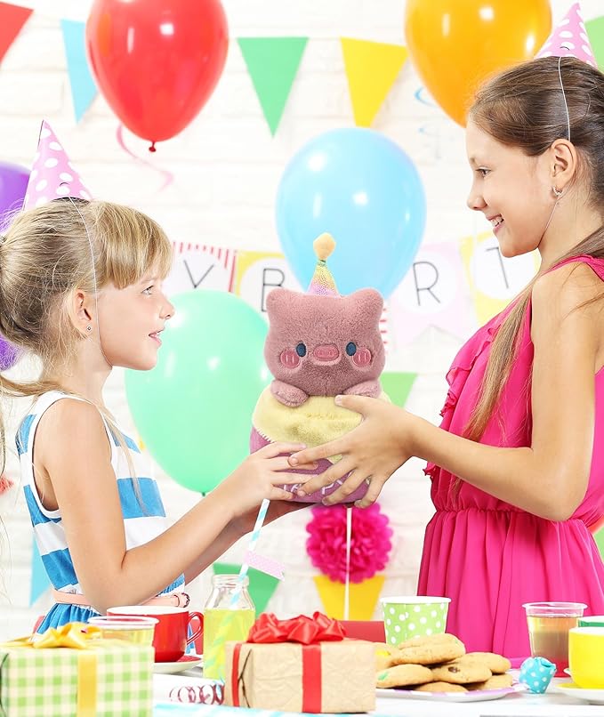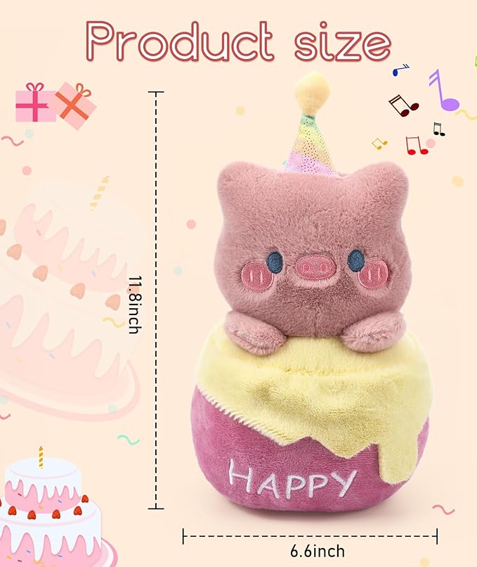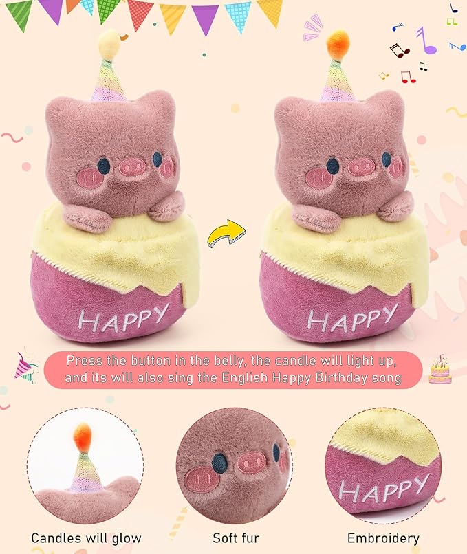- Unique Design: Adorable birthday cake stuffed animal design with a glowing candle on pink pig's head makes the stuffed pig suitable for all ages, making it a perfect gift for birthdays, Valentine's Day, Christmas, and more