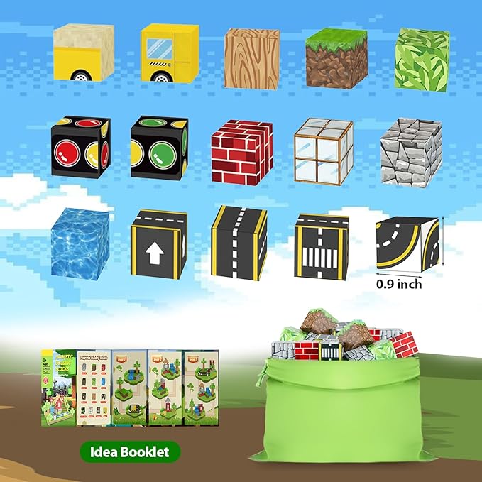 - 100Pcs Magnetic Building Set: This magnetic blocks includes 15 different patterns that enhance kids' concentration and patience.Children aged 3+ can explore their imagination by using turf, bricks, roads, rivers, and forests to build anything they can envision, fostering creativity and hands-on learning.