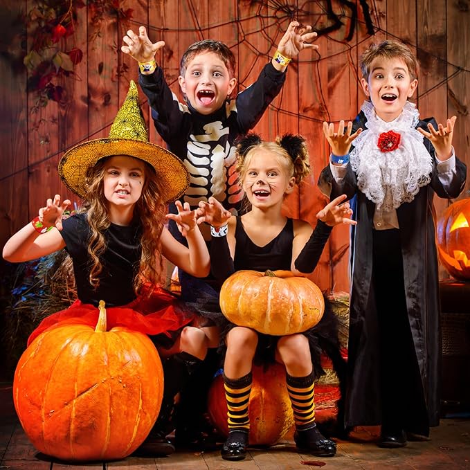 - Fun for Halloween: the Halloween wristbands are suitable for different ages of people, and they can be applied as party favors and candy bag fillers, they can be rolled up and stacked, or fully unfolded on the table, let the children use them to play games, enhance the festive atmosphere of the party, let them hum and enjoy the Halloween party