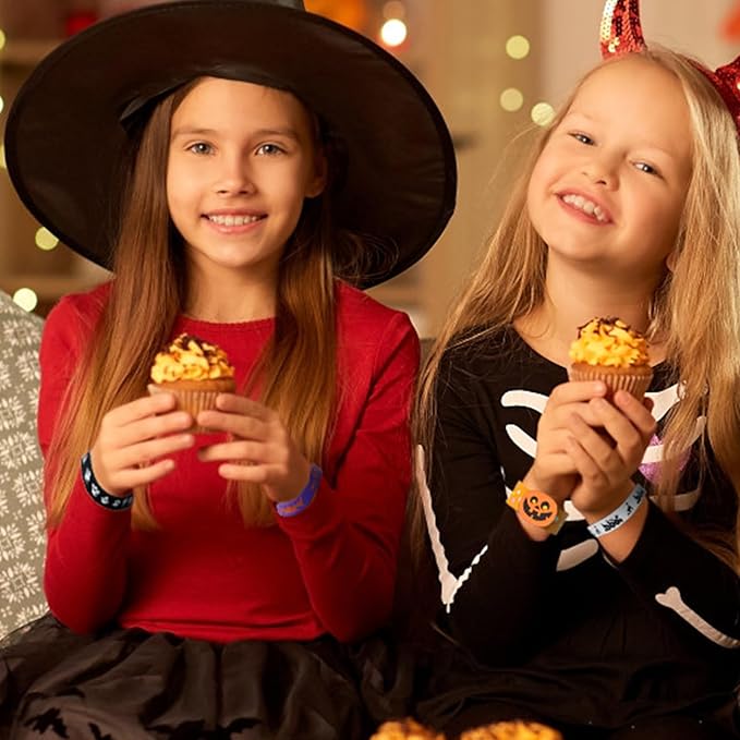 - 【Wide Applications】These Halloween bracelets are perfect for Halloween parties, party prizes, game rewards, classroom gift bags, or add these cute bracelets to treat bags. Most kids will love this Halloween treat!