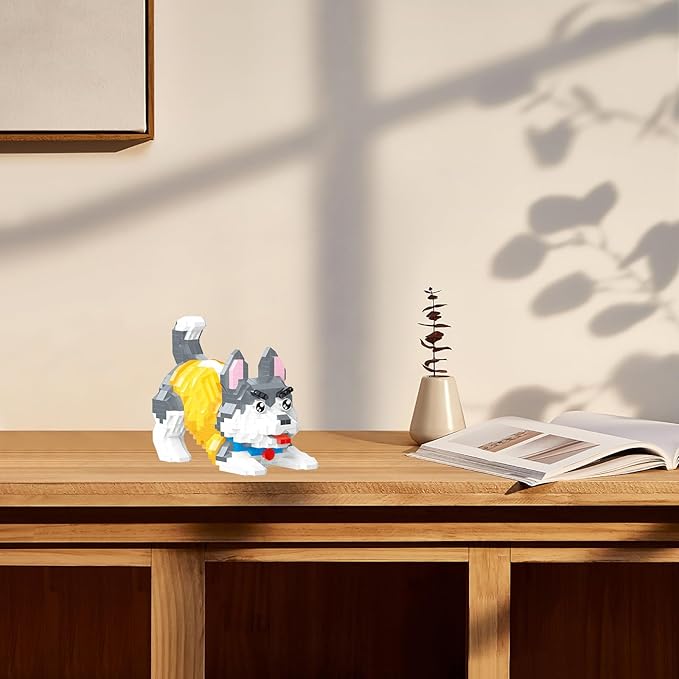 Cute Animal Building Blocks, Pet Micro Mini Building Blocks for Adults and Kids Age 6+ Gift Toy 952 Pcs (Yellow Husky)