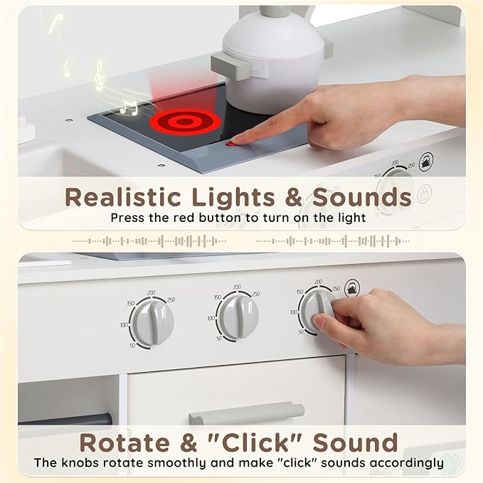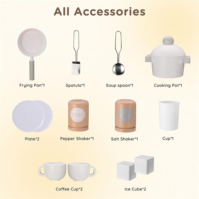 • Perfect Gift: Ideal for birthdays, holidays, or any special occasion, this wooden play kitchen set makes a wonderful gift for boys and girls who love to cook and play pretend.