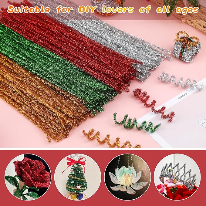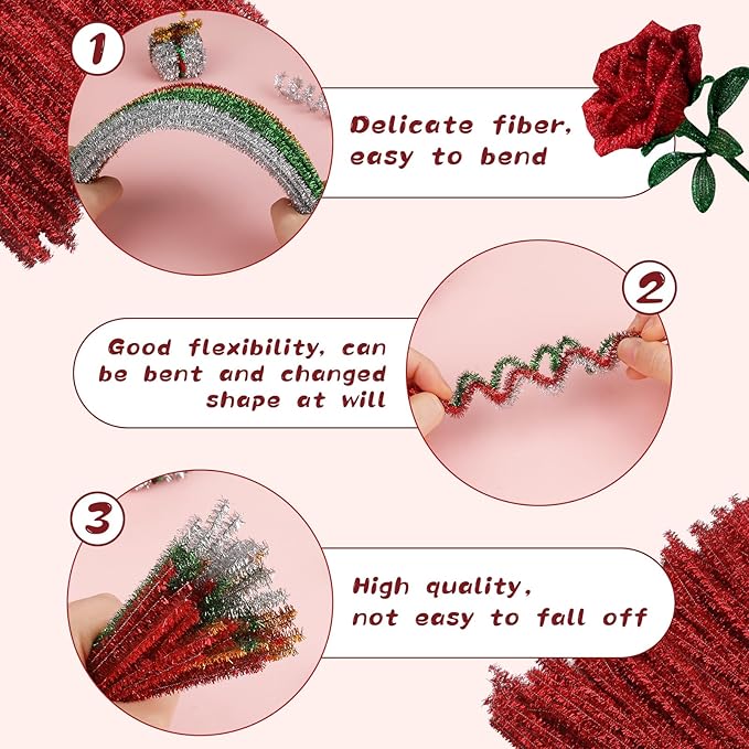 - High-quality Material: These pipe cleaners are made of metal wire and glitte, shiny, durable and not easy to break, can be flexibly bent into creative shapes and figures, and the finished product is not easy to fall apart