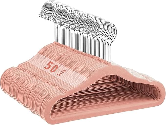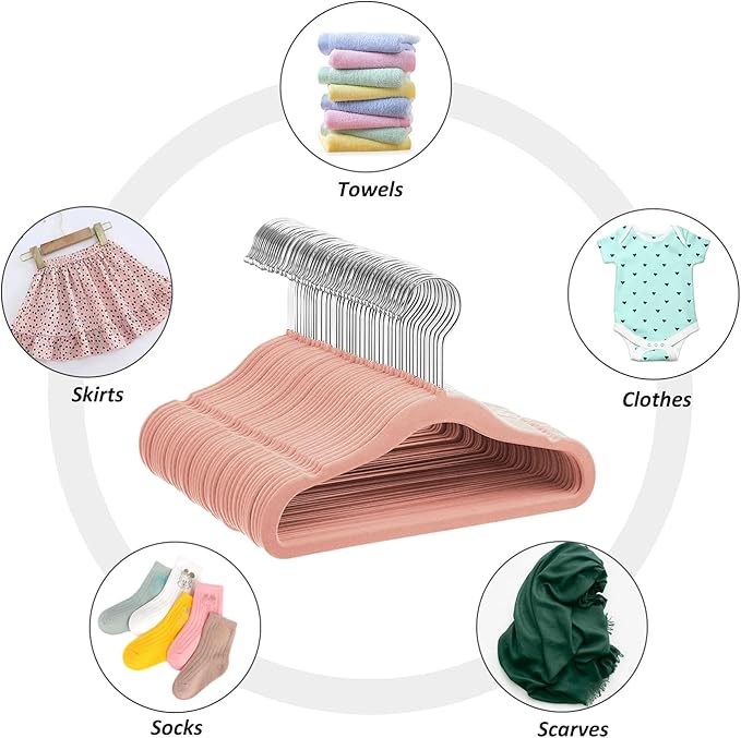 Velvet Baby Hangers 50 Pack, 11 Inch Kids Non Slip Hangers, Premium Childrens Hangers for Clothes, Space-Saving Nursery Hangers, Perfect Infant/Toddler Clothes Hangers for Daily Use(Pink)