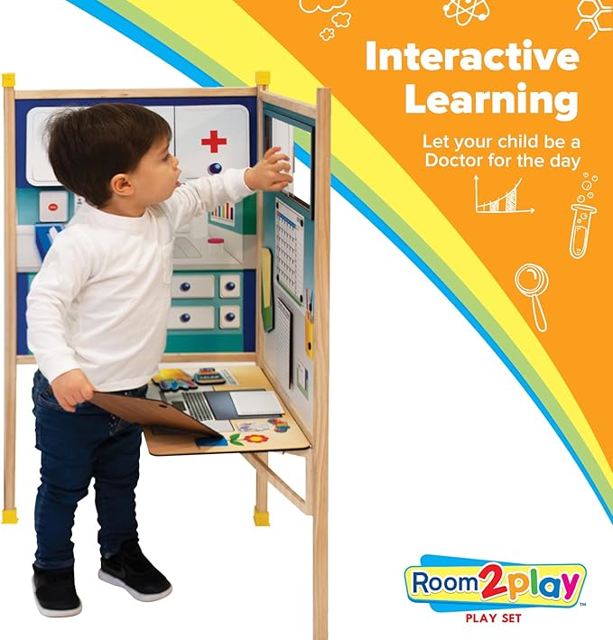 - 🧑🚒 EDUCATIONAL AND INTERACTIVE - Room2Play Wooden School Playset encourages pretend play, social interaction, problem solving, creativity, imagination, and role play. Get your child on early glimpse of life at school.