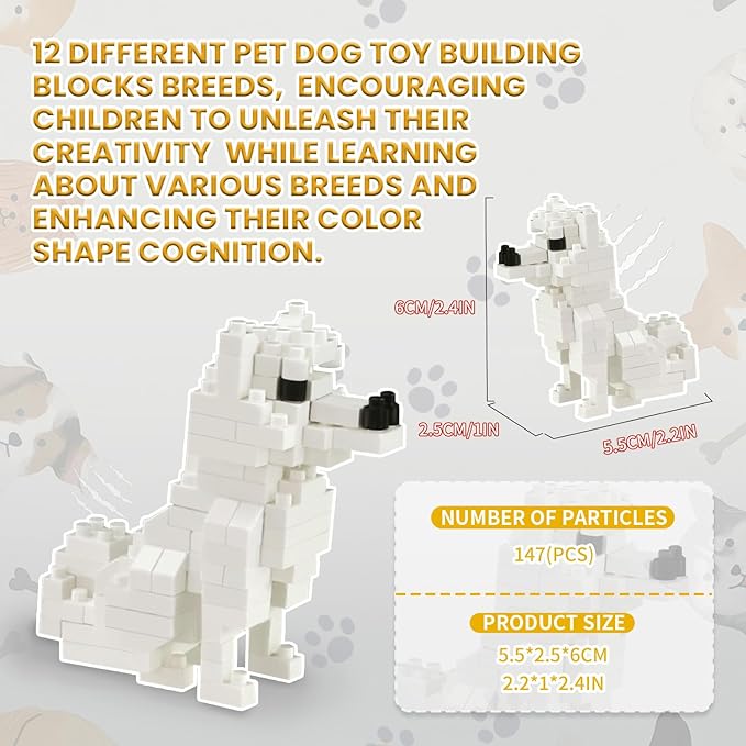 - Educational & Engaging: Pet dog toy building blocks set features 12 different dog breeds, encouraging children to unleash their creativity while learning about various breeds and enhancing their color shape cognition.
