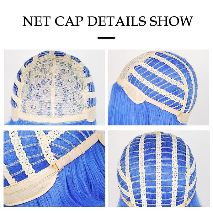 - 【Wig Style】1*Blue wig, 1*wig cap, you can get an extra hair cap. Provide you with a silky soft wig. You can fluffy the wig with your fingers easily.