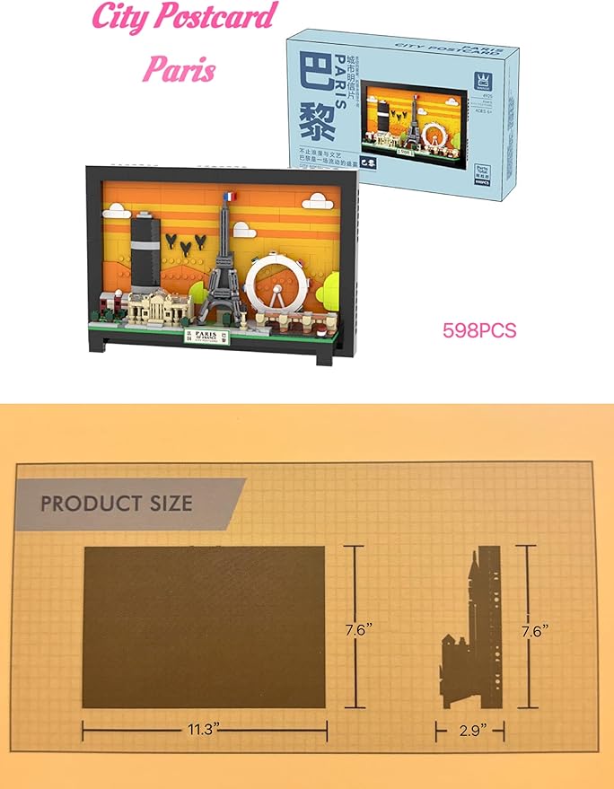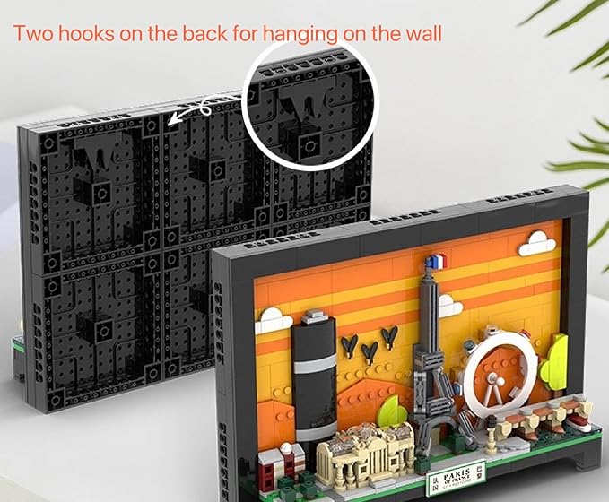 - 【Paris Skyline Features】This Paris postcard wall art building set is highly detailed architecture interpretation of the Paris skyline, featuring famous landmarks like The Eiffel Tower, Grand Palais and Monapace Building, plus plant tree and grass areas, it will be bringing you fantastic memories of Paris