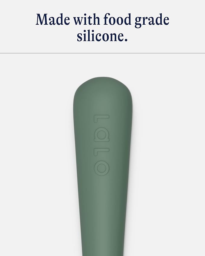 Lalo Little Spoon Set - 2 Piece Baby Spoons Set for Infants & Babies - Made From Food Grade Silicone Dishwasher Safe - Baby Feeding Essentials for Early Stage Mealtime - Olive