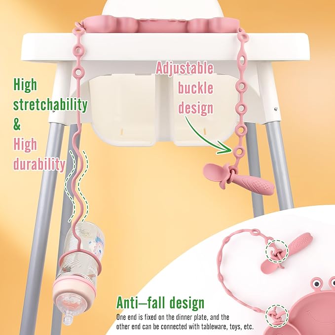 - Silicone Baby Feeding Set: Includes 8-Pieces Baby Feeding Essentials, 1 suction baby plate, 1 suction bowl, 1 open cup, 3 feeding spoons (2 chew pre-spoons perfect for purees & a normal spoon with easy-grip soft handle for tiny hands), 2 safety straps to keep spoon, fork, bottle & pacifier Off The Floor