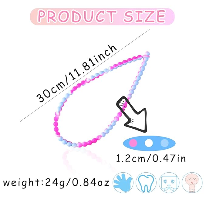 - 【100% Food Grade Silicone】:Our chew necklace are non-toxic, odorless, eco-friendly and flexible, free from harmful chemicals such as BPA, phthalates and lead, ensuring your baby will not feel discomfort when chewing, relieving your baby's gum pain.