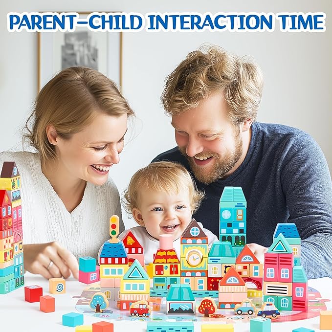 - 100 PCS Little City Builder Set: This creative 100-piece Little City Builder Set includes colorful city blocks and road system puzzles, featuring diverse shapes and vibrant colors. Crafted from high-quality wood and painted with safe, durable paint, this set not only serves as a toy but also as an educational tool. It is the perfect choice for preschool children to explore the world and develop their hands-on skills