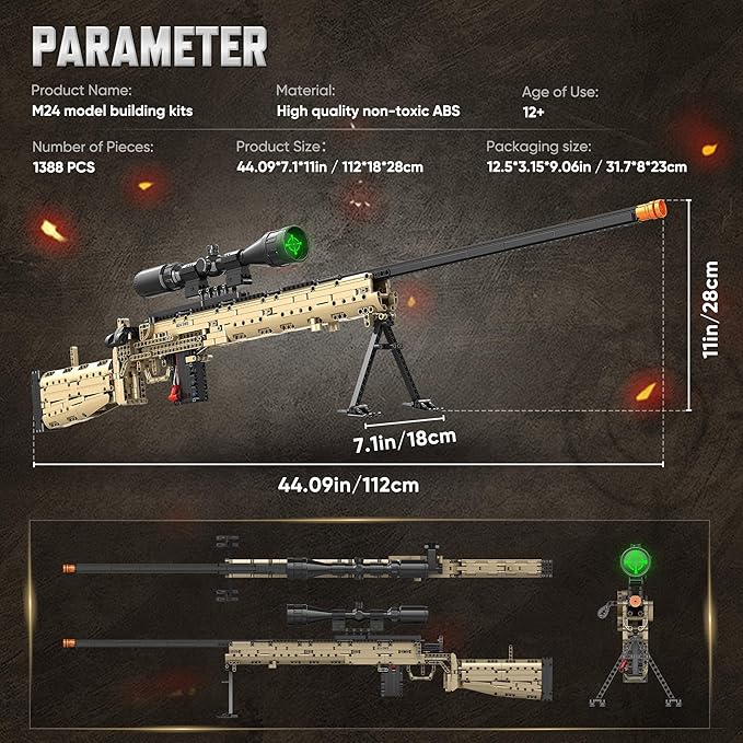 Building Block Gun Model Toys for Adults, 1388 Pcs 1:1 M24 Building Set Guns Model Toys for Adults Boys Teens Age 12+, Christmas and Birthday for Military Enthusiasts