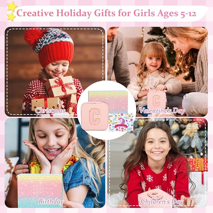 • Portable Travel Bracelet Box for Kids - This girls jewelry making kit comes with a delicate jewelry storage box, 4*4*2 inch which is portable and lightweight. All the charms and beads can be properly partitioned with no mess. No worries about jewelry scratches or loss Choose the initial jewelry box for girls, and she'll love it