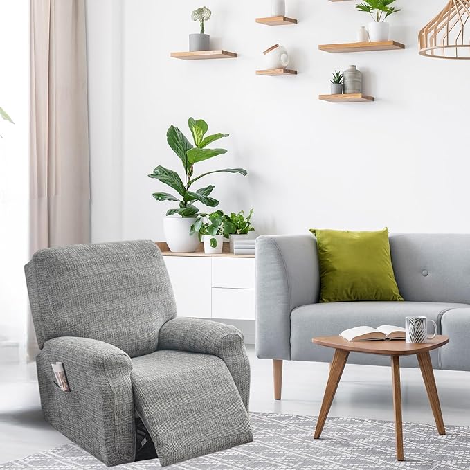 - 4 PIECES RECLINER CHAIR COUCH COVER - Small recliner chair covers set includes back cover, seat cover, two armrest covers and one side pocket, high elasticity material flexibly adapts to most standard recliners, separate design ensures easy installation, reduces wrinkles, gives furniture a personalised fit look, just like a custom-made.