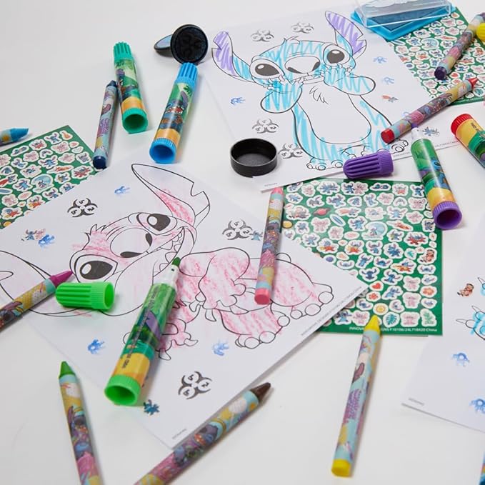 - 200+ PC. STITCH ART SUPPLIES - All the art supplies kids need are included in this fun activity set. They can stamp, color, draw, sticker, and even give themselves tattoos. Born to be a hero!