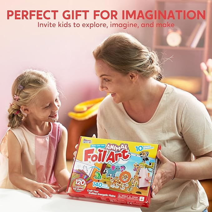 Klever Kits Foil Art Kit for Kids - Arts & Crafts Supplies, Mess Free Coloring, Animal Foil Foam Stickers, Creative Travel Toys, Birthday Gifts for Boys & Girls Ages 4 and Up