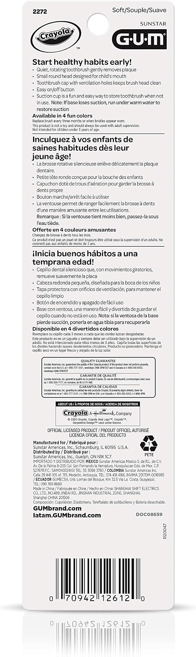 GUM Crayola Power Toothbrush for Kids, Extra Soft Bristled Toddler Toothbrushes, Travel Cap + Suction Cup Base, Batteries Included, 1ct (Pack of 2)