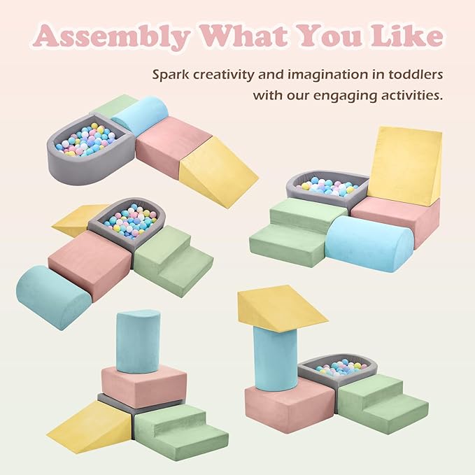 - 【Safe&Fun to Play】: Our climbing blocks with ball pit( hold up to 100 pcs balls, balls not Included) )are made from non-toxic and odorless fabric. Designed with hidden zippers to prevent scratching on children's soft skin, these climbing blocks provide a reassuring&safe environment for play. With a focus on safety, our foam blocks are built without hard structures or sharp edges to protect children from bumps and injuries.Your child can safely play, toddle, and roll on this climbing toy that offers a soft and supportive surface, providing peace of mind for parents