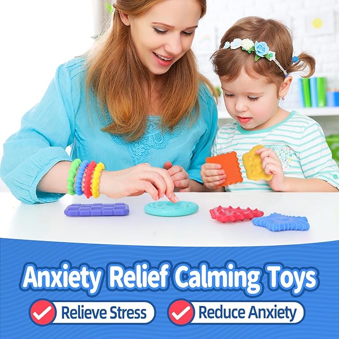 - Upgraded Quality with Premium Materials: If you are looking for stress anxiety relief and calming sensory learning toys for kid with anxiety, stress, Autism, ADHD, and ADD, this set of sensory fidgets or special needs toys is best for you,With unique textures on each squeeze sensory toy and designed using the latex-free TPR materials for extra durability, These super sensory toys will actively work to relieve stress and provide toddlers with hours of calming entertainment at home or at school.
