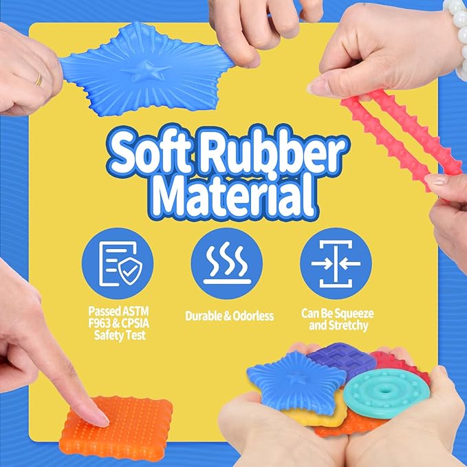 - Strengthened Safe&Durable Material: The sensory fidget toy are made of high quality soft sturdy materials and can withstand heavy-duty use from toddlers and not easy to get to pieces. All the edges are made into smooth and rounded shape for skin-friendly. With an ASTM F963 International Toy Standard Certificate, these classroom calm down corner toys are safe to play with.
