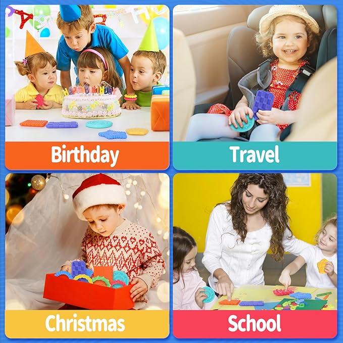 - Amazing Gift Idea for Christmas: sensory toy set is a perfect gift for birthdays and Christmas stocking stuffers as well as an Christmas basket filler, party favor goody bags, pinata fillers for preshchool kids especially for Toddler ,Spread the joy & share these unique texture toys with loved ones; Make someone's day with these stress items.