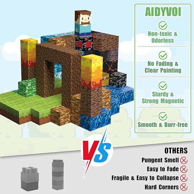 - Strong Magnetic: With powerful and enough magnets ensuring a secure connection between cubes. AIDYVOI magnetic building toys provide stability for hours of role-play fun and firm support for complex and durable designs