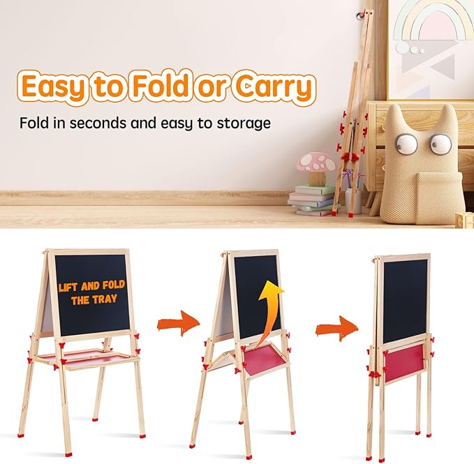 - 【TOOL-FREE ASSEMBLY&FOLDABLE DESIGN】 The kids' easel is easy to install and comes with clear step-by-step instructions, no tools are required. It can be folded in seconds and can be stored in a corner when not in use to save space, making your space more tidy. The foldable design is also convenient for carrying outdoors.
