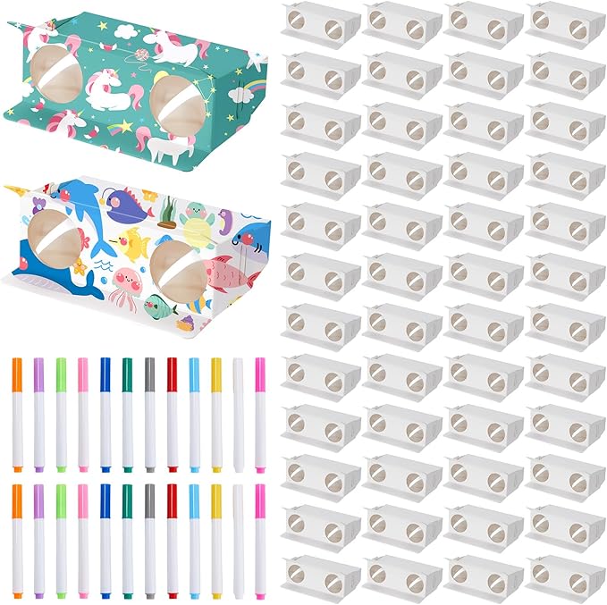 - Adequate Quantity: the package comes with 100 pieces of binoculars for boys and girls and 48 watercolor pens, providing enough quantity to fulfill the needs of a group event, school project, classroom activity or party; Whether you're planning a creative session or want to distribute thoughtful party favors, these cardboard binoculars cover your needs