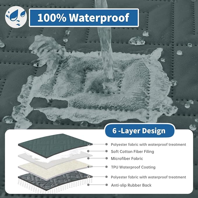 - 【100% Waterproof Protection】Put our recliner cover to the test! The unique waterproof technology can be easily verified, giving you confidence in its effectiveness against liquid mishaps. Say goodbye to worries about spills, stains, pet and baby urine, as this recliner slipcover ensures your furniture remains spotless and dry at all times.