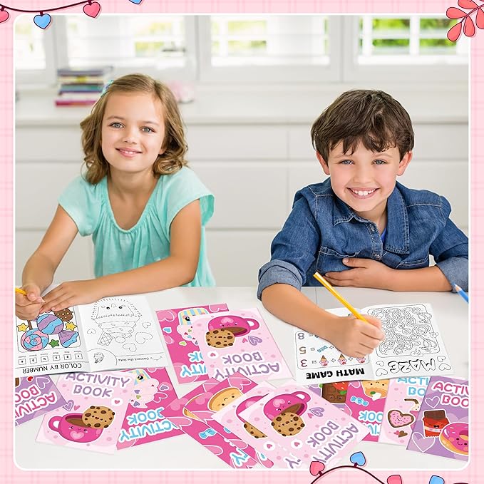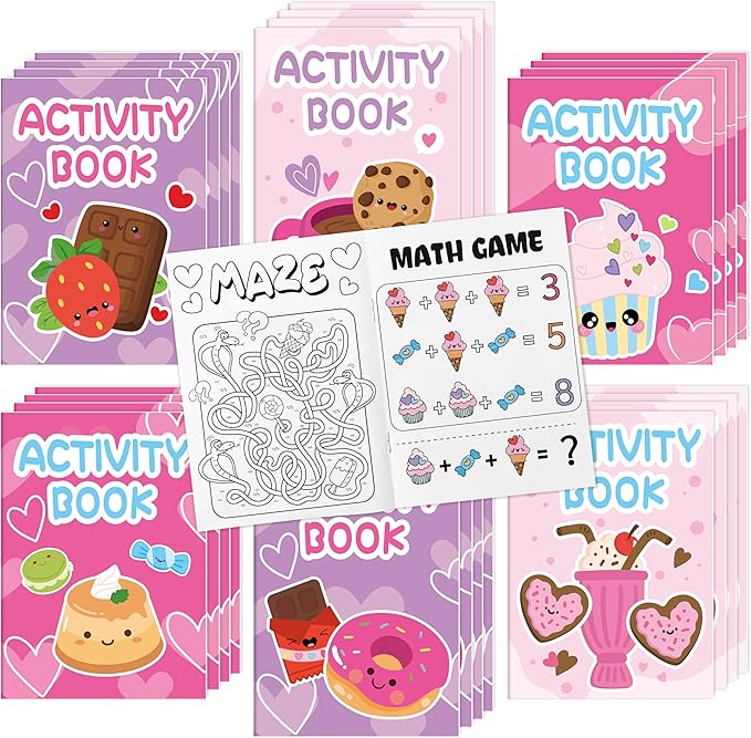 - Festive-Themed Activity Books: Our 24-piece Valentine’s Day dessert-themed mini game activity book set includes a variety of colorful mazes, word searches, word scrambles, and puzzles, ensuring endless fun for kids during Valentine's Day parties.