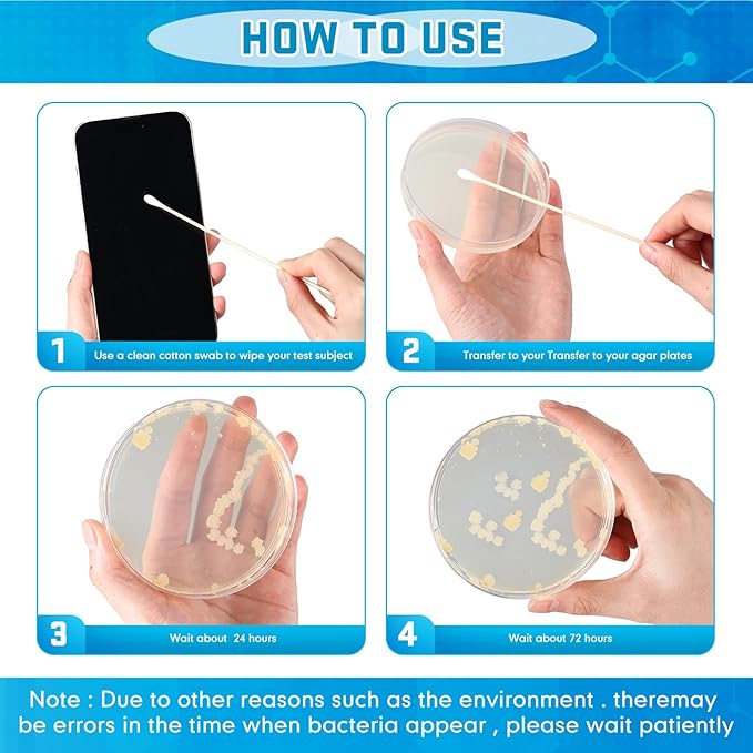 - Durable and Quality Materials: the petri dish experiment kit is made of quality plastic material, ensuring safety and durability for lab use; Each petri dish contains a fresh and thick layer of agar; You can utilize these tools for conducting scientific experiments and fueling your curiosity towards science