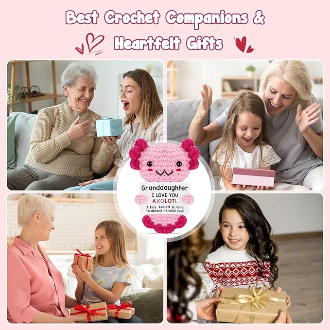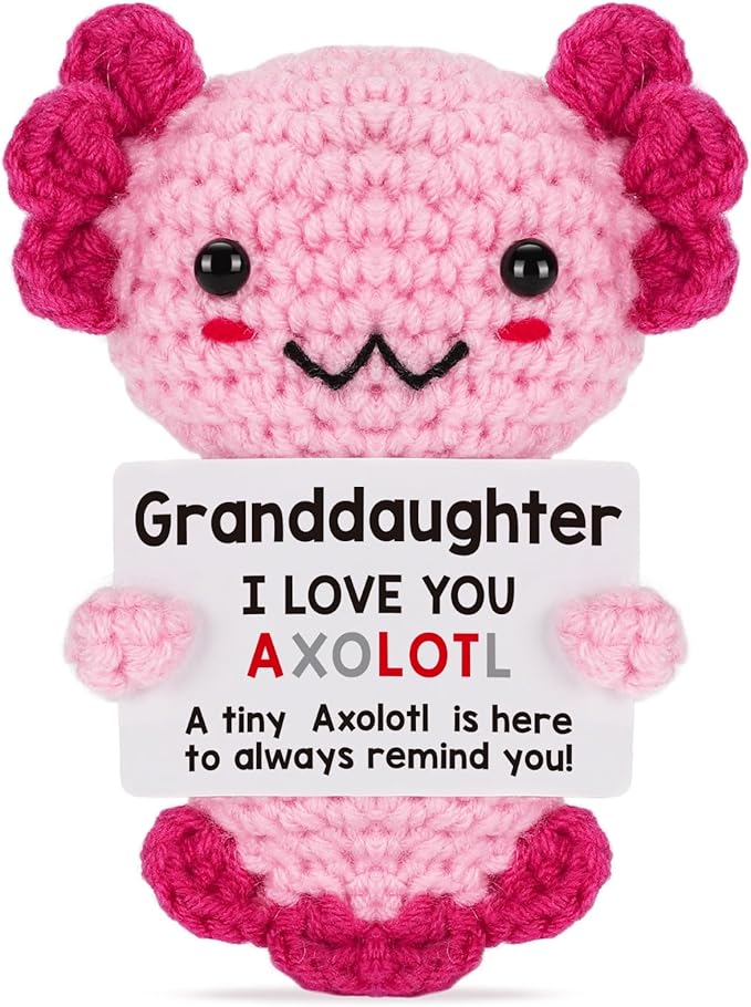 Granddaughter Gifts from Grandma, Grandpa Grandparents, Crochet Axolotl for Year Old Little Girl Kid, Best for Birthday, Christmas Stocking Stuffers, Valentines, Teen Girls Teenage Under 10 Dollars
