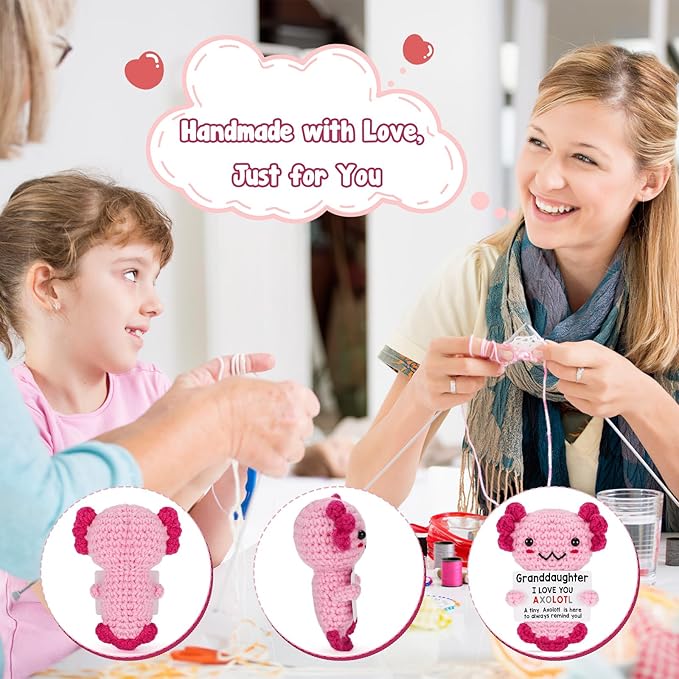 - Gifts for Great Granddaughter: Accompanied by a heartfelt message, this crochet axolotl provides emotional support and encouragement, reminding your granddaughter that she’s always loved and supported by her grandparents.