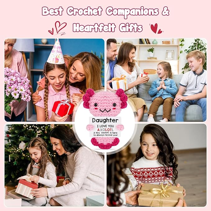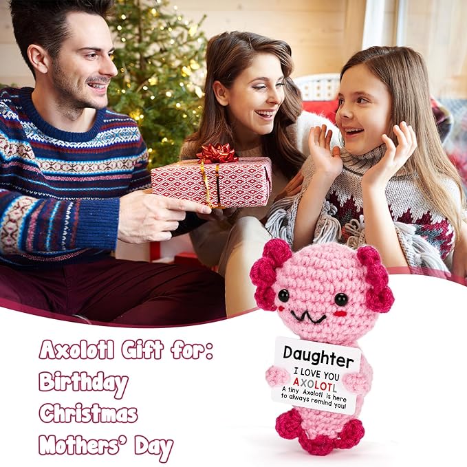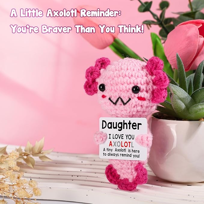 Daughter Gifts from Mom Dad, Crochet Axolotl for Year Old Little Girl Kid from Mother Father, Best for Birthday, Christmas Stocking Stuffers, Easter & Valentines, Teen Girls Teenage Under 10 Dollars