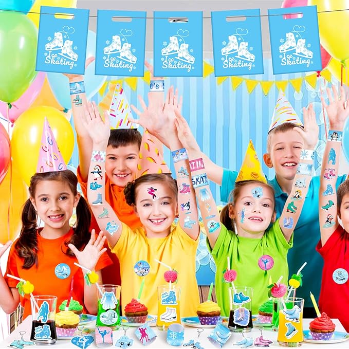 - Ice Skating Party Favors: Our package includes 12 sheet ice skating temporary tattoos (72 Patterns), 50 pcs ice skating stickers, 12 pcs ice skating slap bracelets, 12 pcs ice skating badges, 12 pcs ice skating acrylic keychains, 12 pcs ice skating gift bags, Enough quantity to meet your ice skating party needs