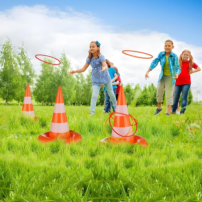 - Construction Cone Ring Toss Game- Featuring unique and construction cone shapes loved by kids and adults alike,improves hand-eye coordination and adds interactive fun throughout the party; And Mini construction vehicles Toys,slap bracelets, Mini shovel,temporary tattoos and bubble wands that kids can take home as gift.