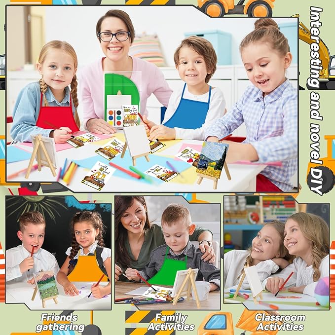 - Carefully crafted small canvas kit with easel: perfect for children's activities, art classes or children's birthday parties, it can inspire imagination and creativity, leading to a world of color, imagination and shared experience, our painting supplies are perfect for classrooms and art rooms, ideal for art exhibitions or craft parties, the apron helps keep your space and clothes clean, it is a great Valentines Day gift for kids