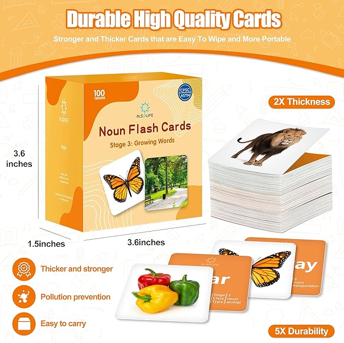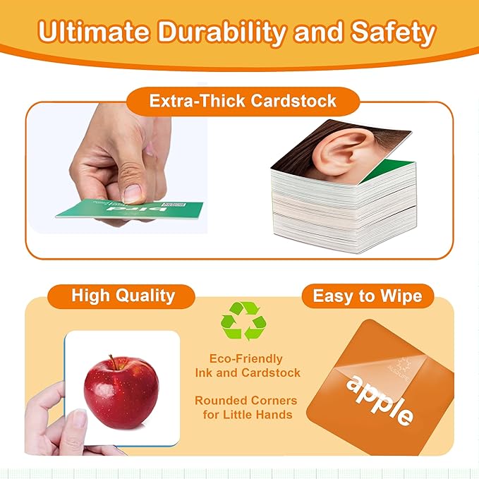 - 【Safe, Durable, and Child-Friendly】These cards are 3x thicker than standard cards, ensuring long-lasting durability. With rounded corners for added safety and double-sided lamination, they are easy to clean and maintain, making them ideal for young learners.