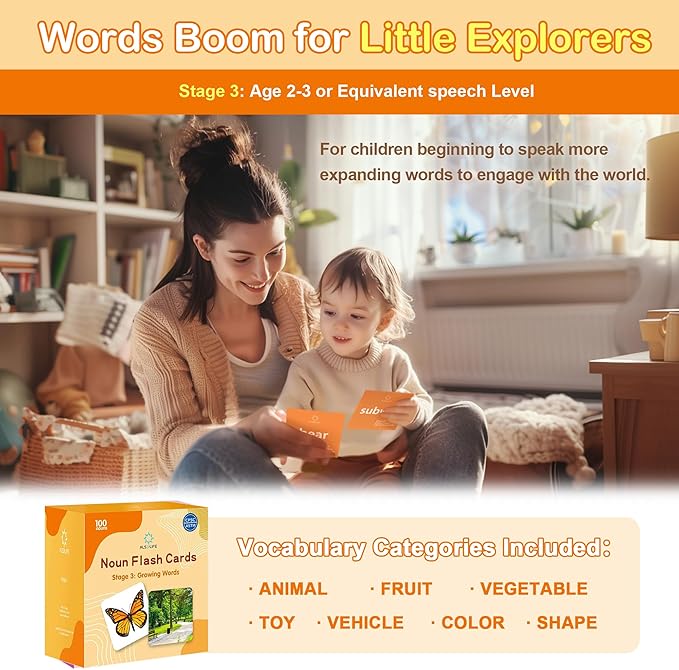 - 【Speech Therapy Materials for Expanding Vocabulary】ALSOLIFE 3rd Stage Flash Cards feature 100 high-frequency words across categories like vegetables, fruits, animals, transportation, colors, and shapes. Perfect for toddlers expanding their vocabulary beyond basics, these cards introduce everyday concepts to help build a diverse and functional vocabulary.
