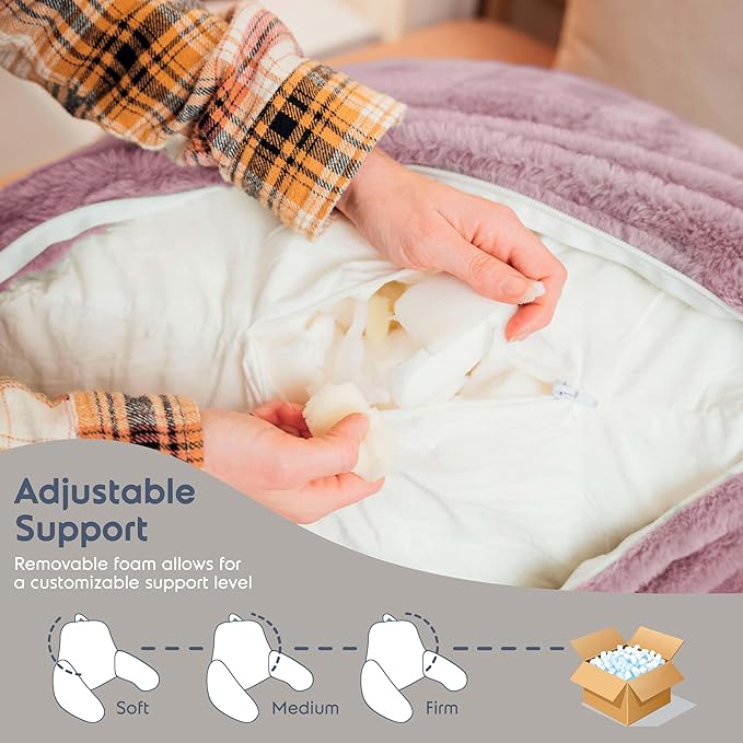 - Ultimate comfort: Experience unparalleled support while reading or watching TV with our backrest pillow for bed, designed to provide the perfect angle for relaxation and enjoyment. Featuring a plush, cozy faux fur cover, it adds an extra layer of luxury and comfort, making it ideal for both adults and kids.
