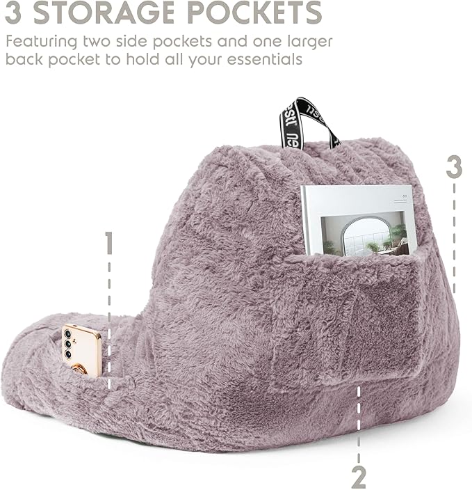 - Bonus Pockets: Featuring 3 convenient pockets, this bedrest pillow helps you create a cozy nest without needing to get up once you're settled in. The 2 small side pockets are perfect for storing your remote or phone, while the larger back pocket is ideal for magazines, books, or a tablet.
