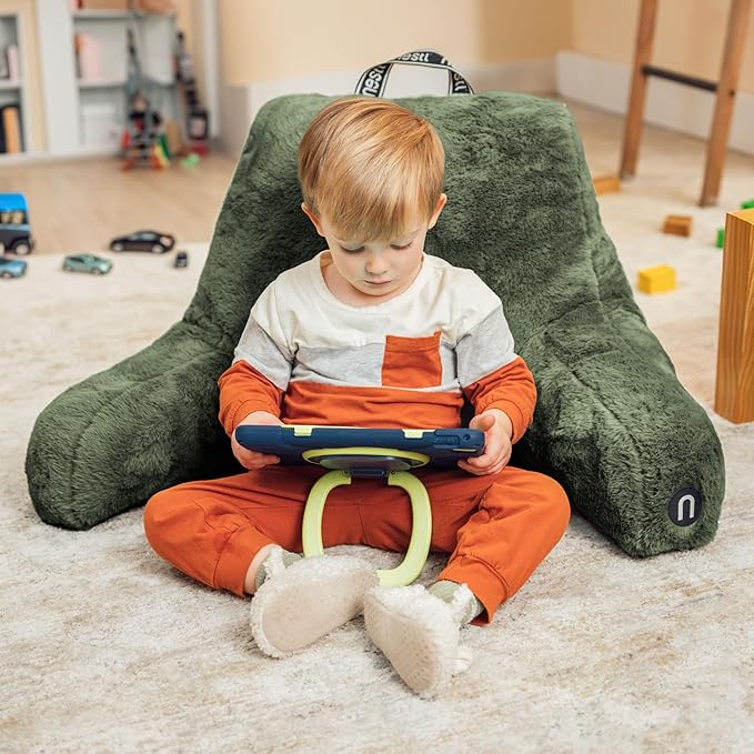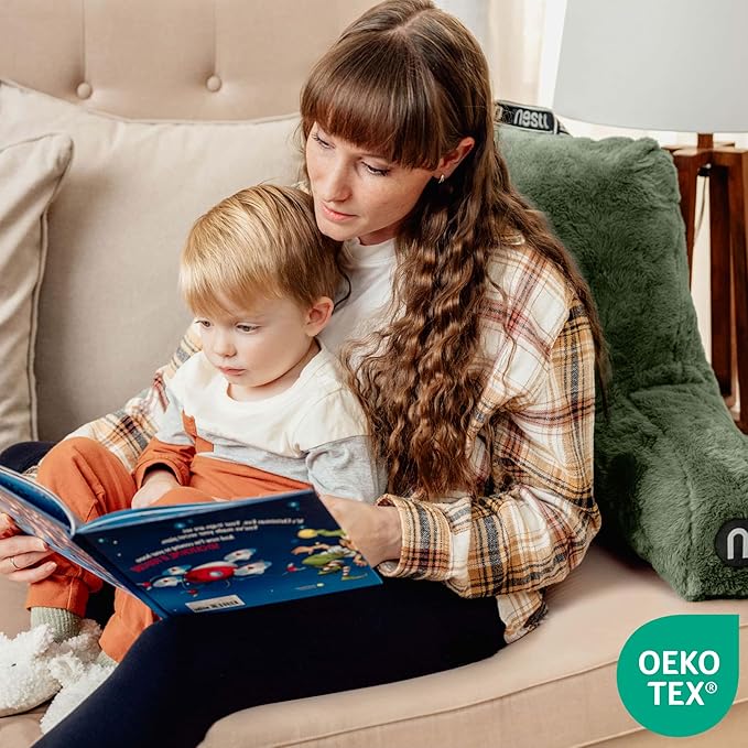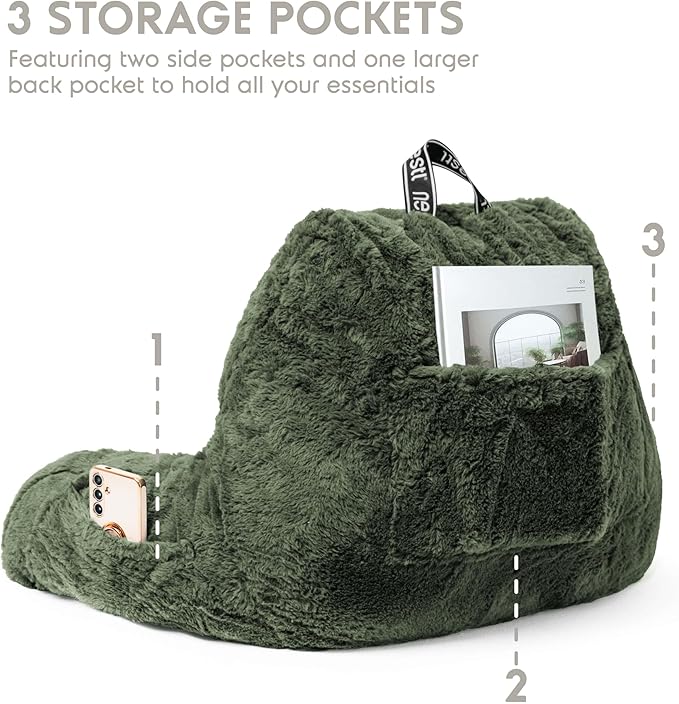 Nestl Fur Reading Pillow, Stylish Back Pillow for Bed Sitting Up, Faux Fur Bed Chair Pillow with Arms, Reading Pillows for Sitting in Bed Adult & Kids, Back Support Pillow for Bed Rest - Olive Green