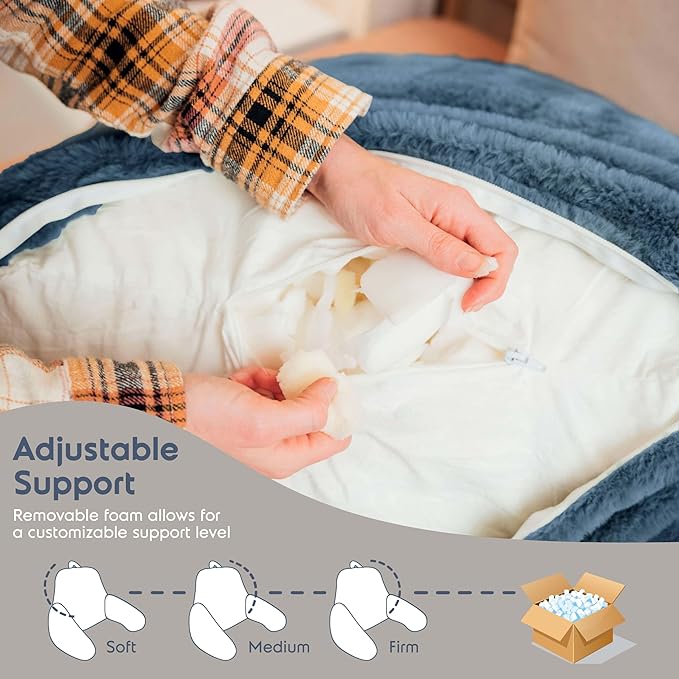 - Ultimate comfort: Experience unparalleled support while reading or watching TV with our backrest pillow for bed, designed to provide the perfect angle for relaxation and enjoyment. Featuring a plush, cozy faux fur cover, it adds an extra layer of luxury and comfort, making it ideal for both adults and kids.