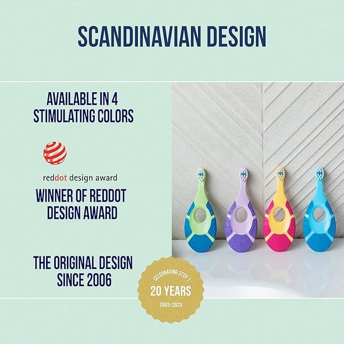 - TAILOR MADE - Step 1 toddler toothbrush step 1 toothbrush is tailor-made to make the first brushing experience a good one. The short neck and it`s unique teeth ring prevent to swallow or prick when brushing